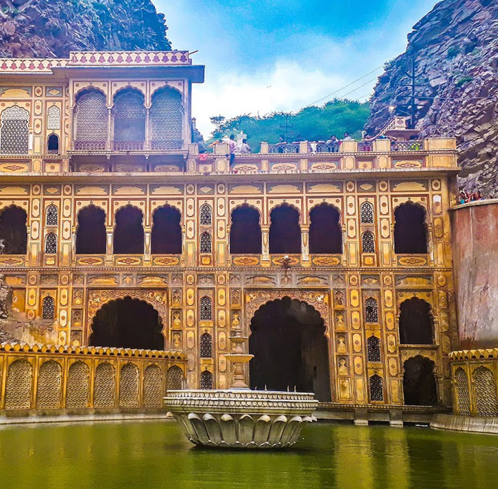 Galtaji is an ancient pilgrimage centre in Jaipur. Set amidst low hills and packed with locals and tourists alike, the attractive spot has temples, pavilions and holy kunds (natural springs and water tanks). locally called the Monkey temple. It gets this moniker because of a large group of resident monkeys. The green landscape and chattering monkeys add to the delight of the area.