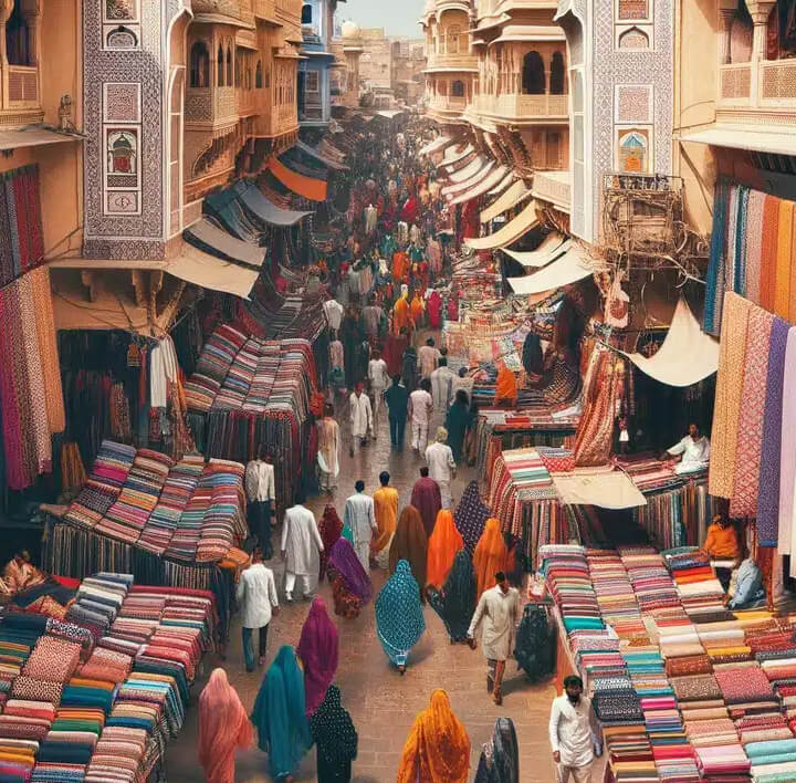Here, visitors can explore a labyrinth of narrow lanes adorned with shops showcasing exquisite textiles, traditional handicrafts, and captivating blue pottery. Famous for its intricate designs and vibrant hues, blue pottery adds a unique charm to the market, alongside block-printed textiles, handcrafted paper products, pottery, and leather goods.